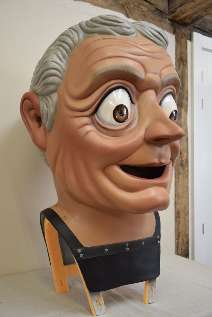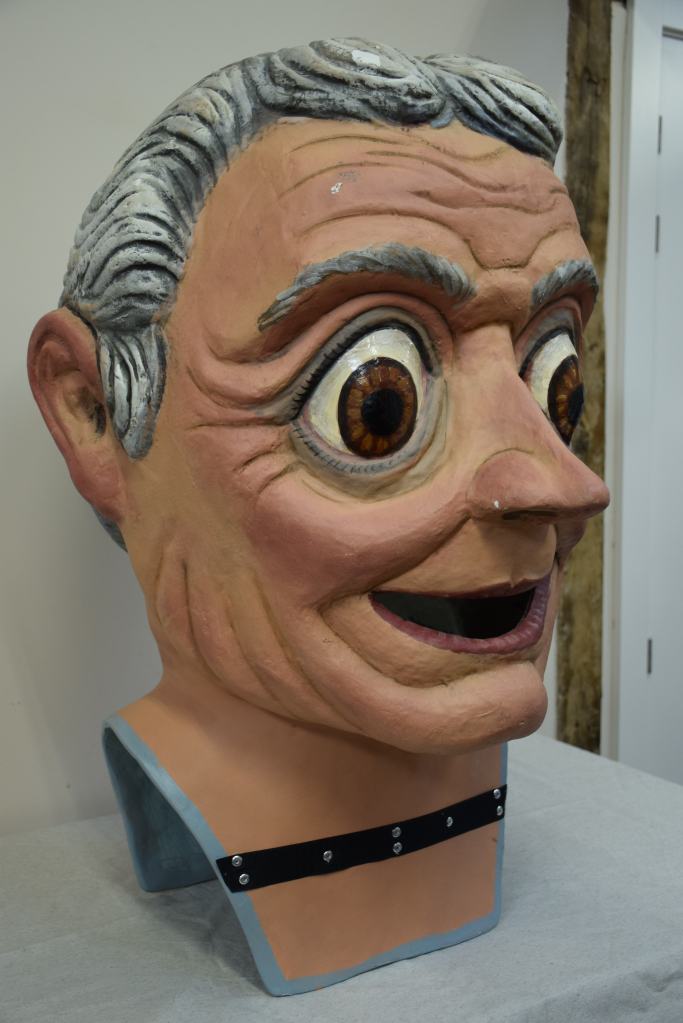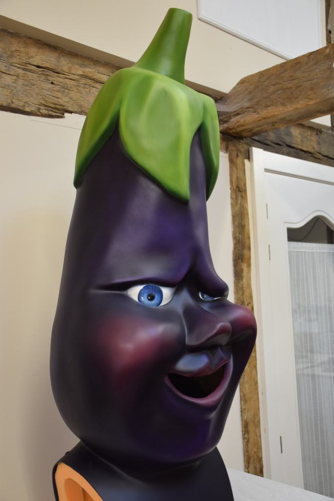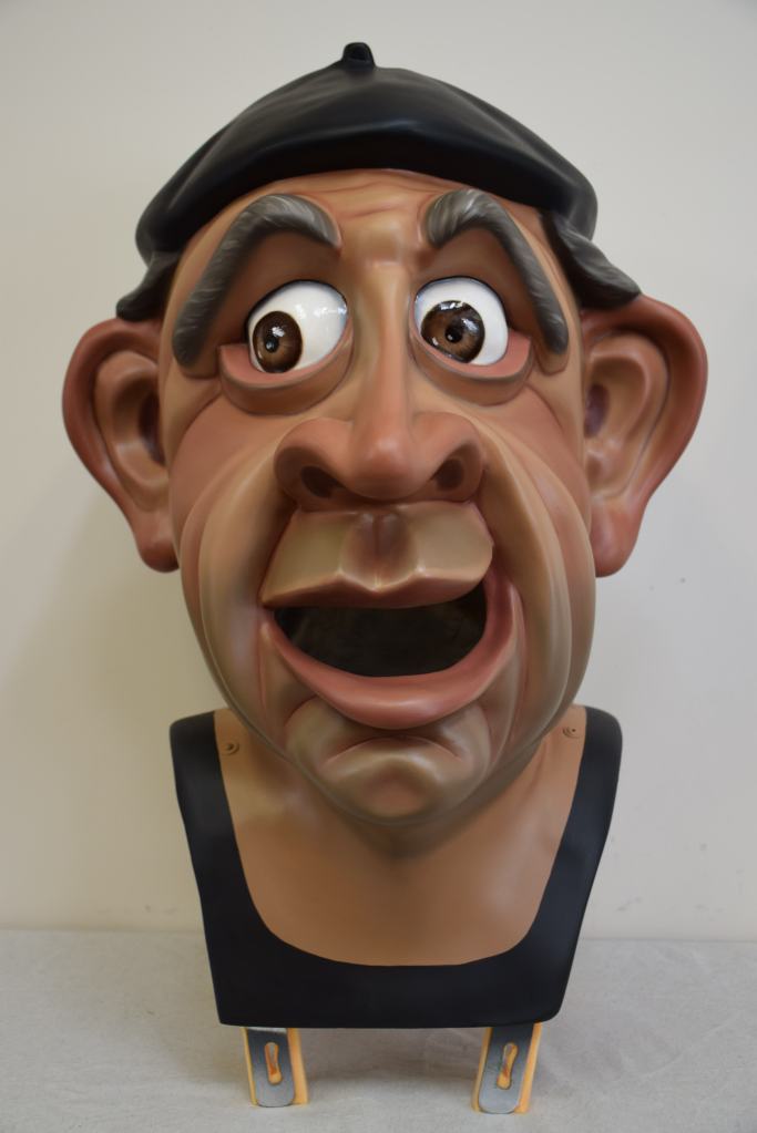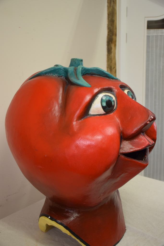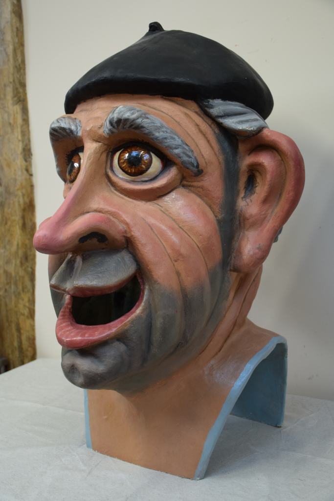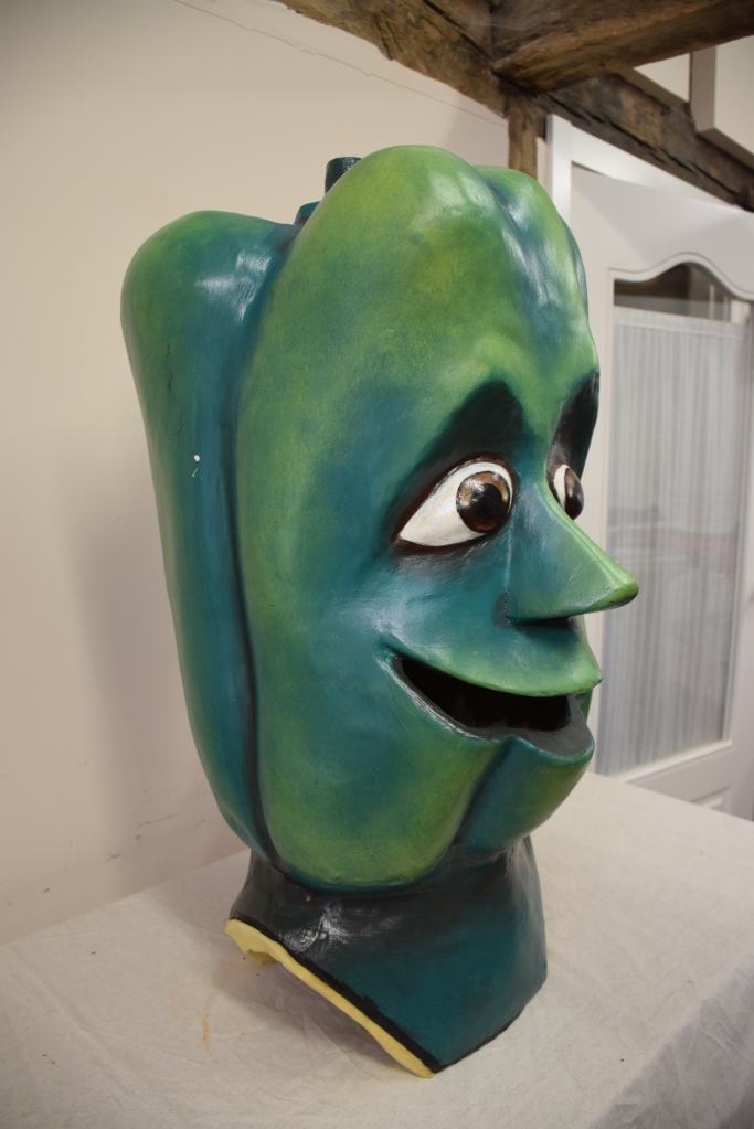 Estos cinco cabezudos de Llinars del Vallés pasaron por el taller en dos momentos diferentes para ser restaurados, la simpática pareja de ancianos compuesta por Martí y Maria lo hicieron en 2022 mientras que la berenjena, el tomate y el pimiento lo hicieron en 2023. A las verduras se les realizaron nuevas pecheras junto con nuevos sistemas de sujeción.