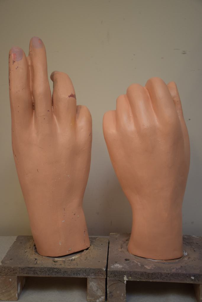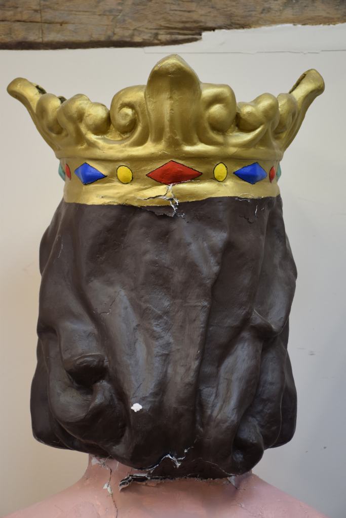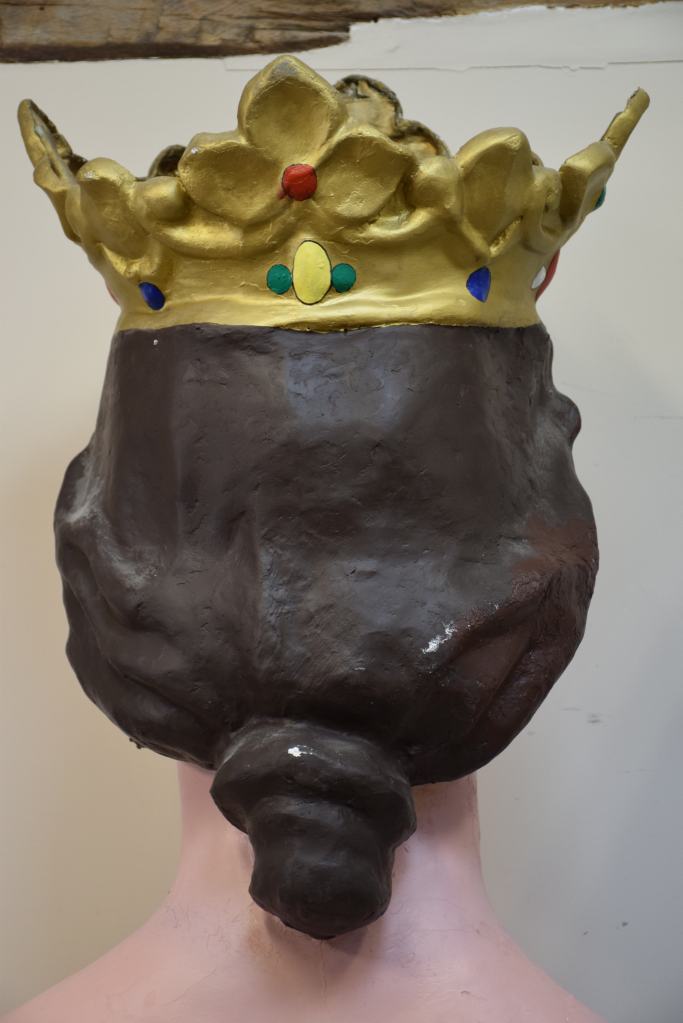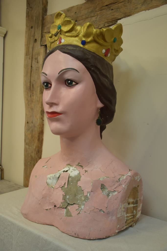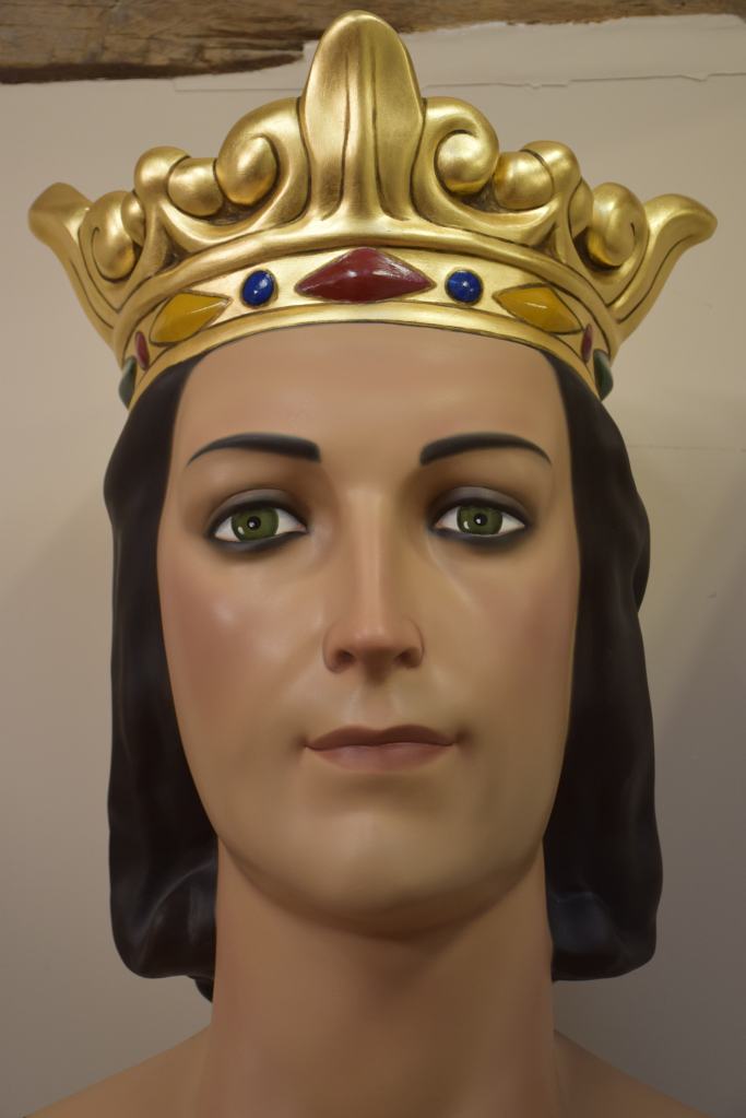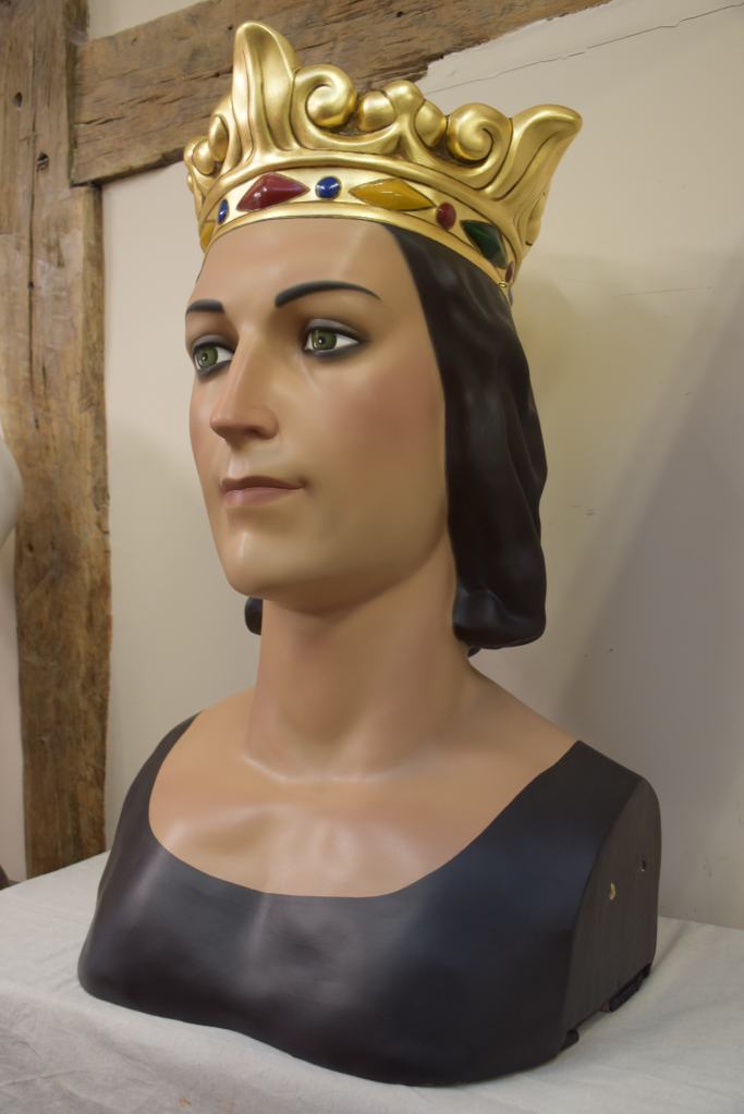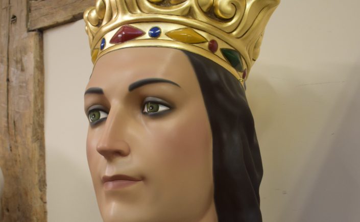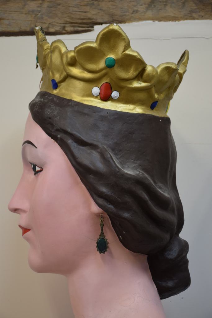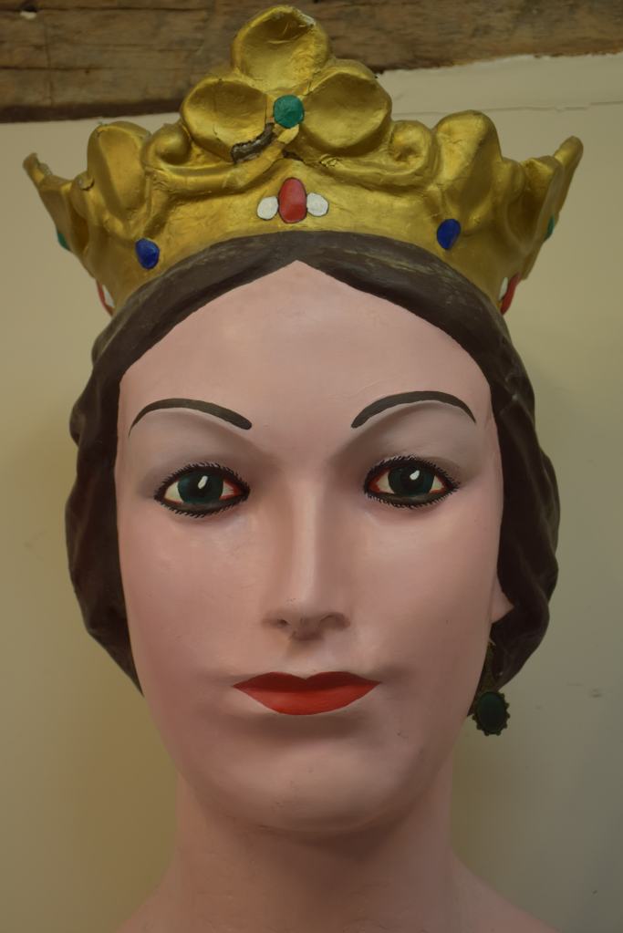 Los gegants vells de Sant Quintí de Mediona, Roger y Elisenda, fueron adquiridos a la casa barcelonesa El Ingenio en 1969. Estuvieron en activo hasta 2012 cuando vecinos de la localidad realizaron unas copias más ligeras. La intervención ha consistido en recuperar la imagen original de estos gigantes siguiendo el esquema de colores y maquillaje, además de consolidar las piezas de cartón piedra que se encontraban en un estado muy delicado.